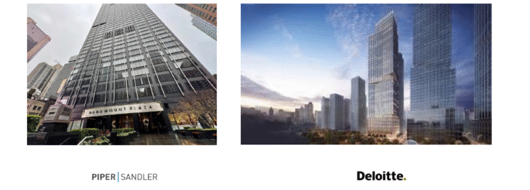 Major deals include Deloitte’s ~800k SF pre-lease at 70 Hudson Yards and Piper Sandler’s 140k SF
