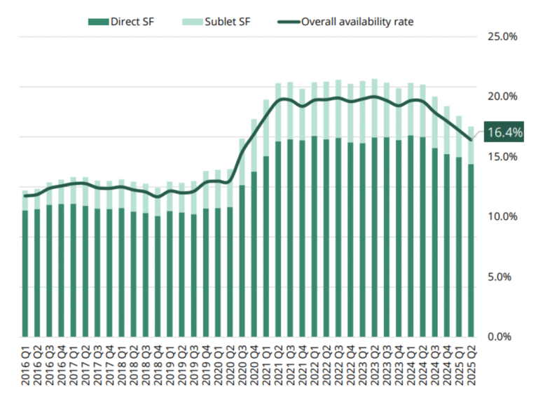 Manhattan recorded 3.7mm SF of new leases in August 2025, more than 20% above July’s pace.